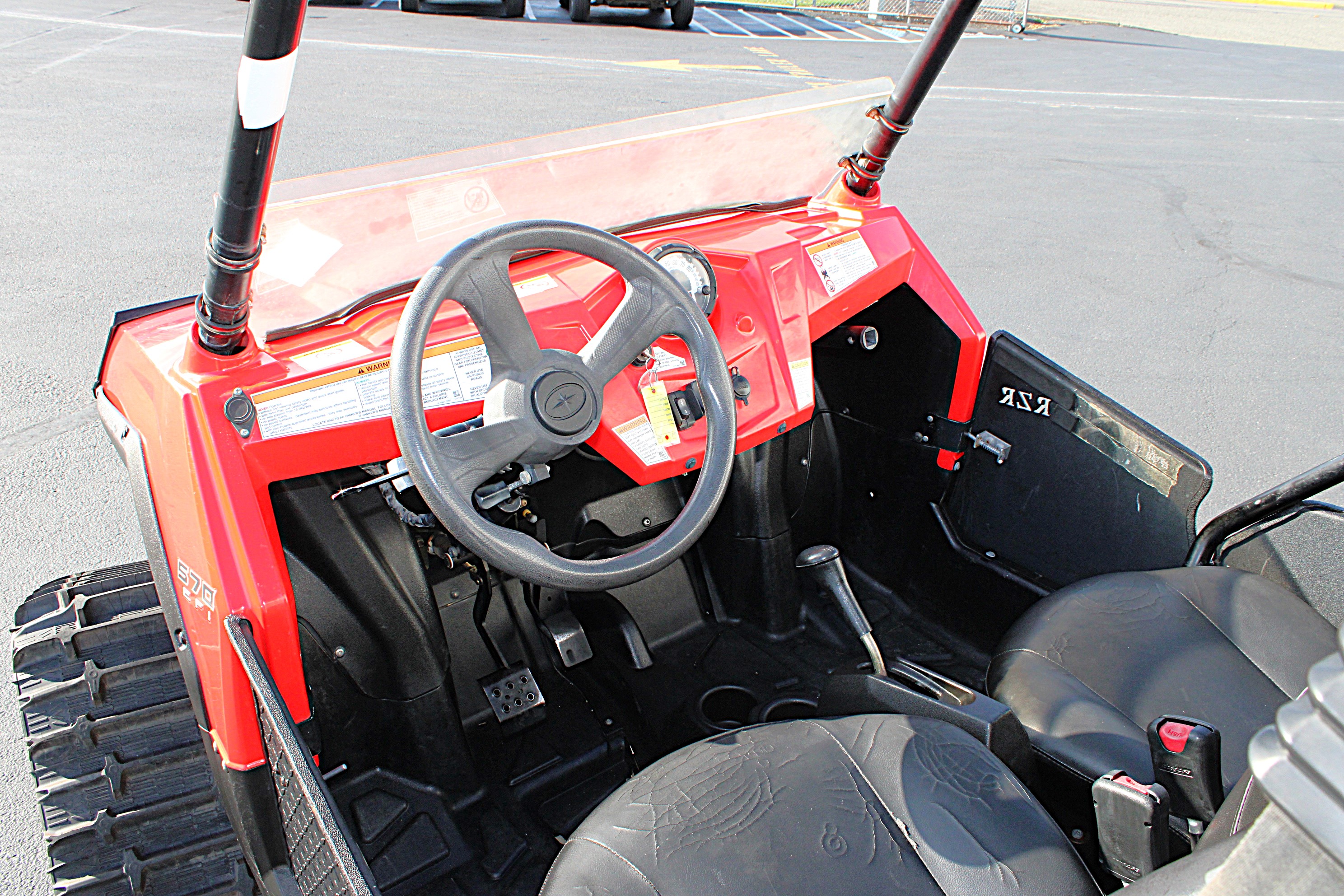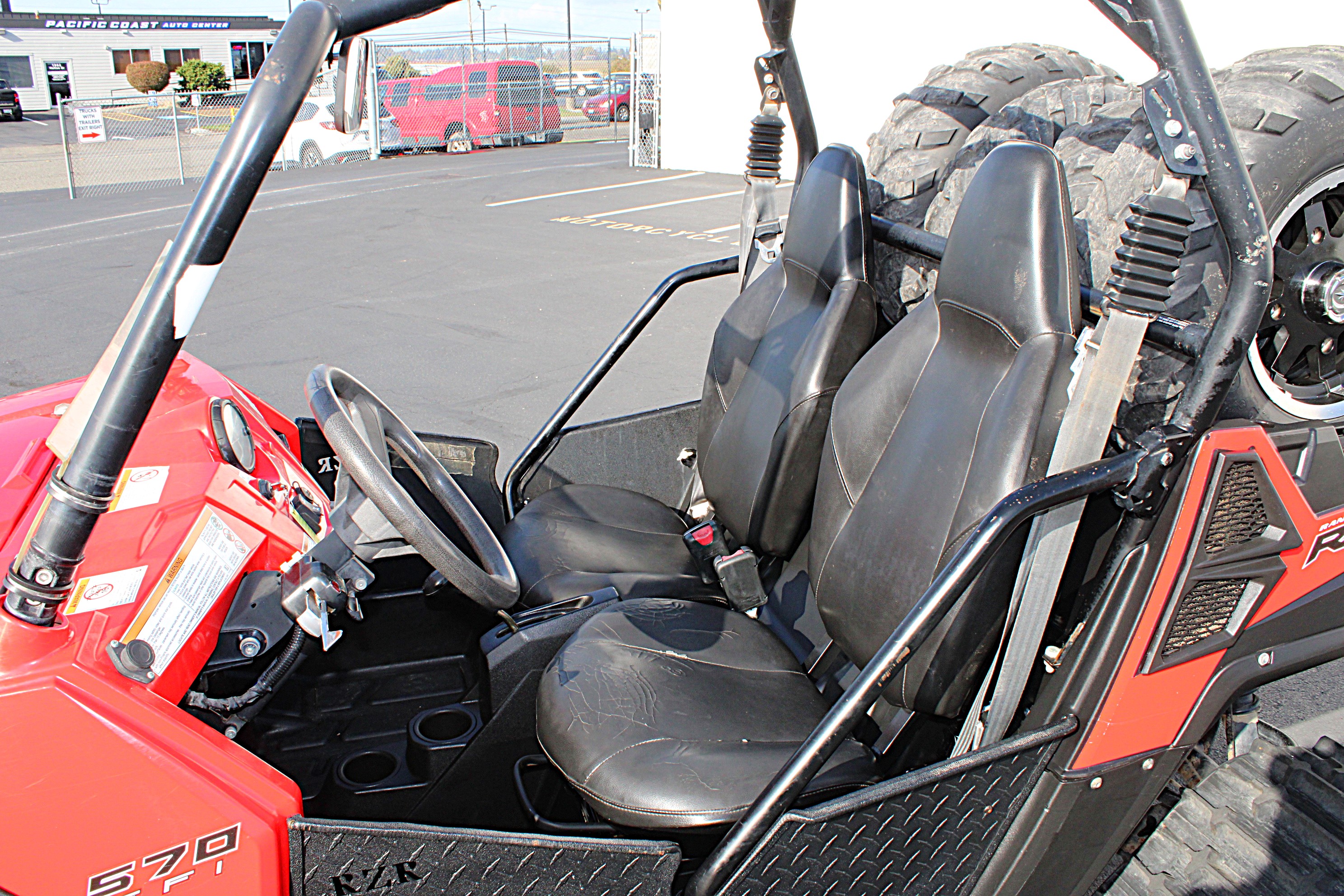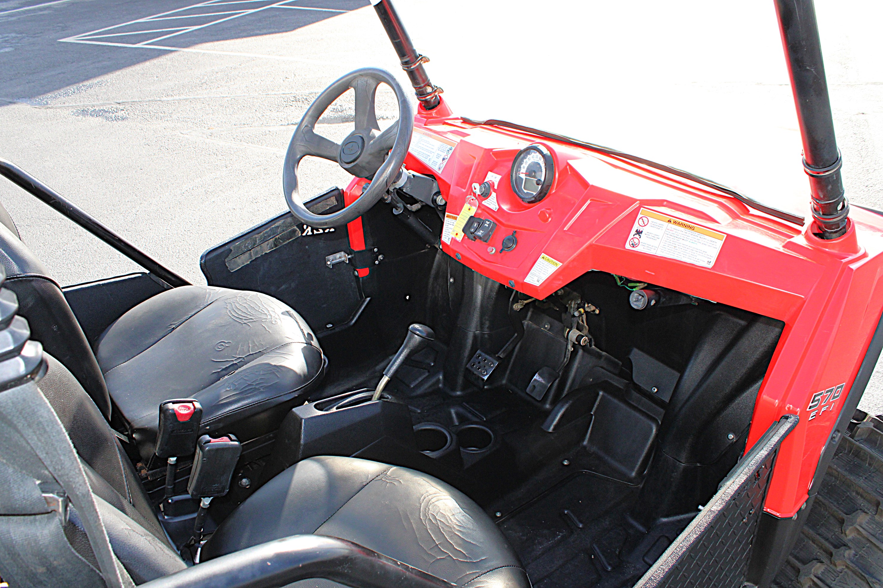 The Polaris Ranger RZR 570 is a sport utility style utility vehicle with an MSRP of $9,999 and was new for 2012. Power is provided by a 4-Stroke, 567cc, Liquid cooled, DOHC, Longitudinal In-Line engine with Electric starter. The engine is paired with The Ranger RZR 570 rides on Steel wheels with Ancla: 25 x 8-12 front tires and a Ancla: 25 x 10-12 rear tires. The front suspension is an Independent Double A-Arm while the rear suspension is an Independent Double A-Arm. Front Hydraulic Disc brakes and rear Hydraulic Disc brakes provide stopping power. The Ranger RZR 570 comes standard with a Bucket, 2-passenger seat.