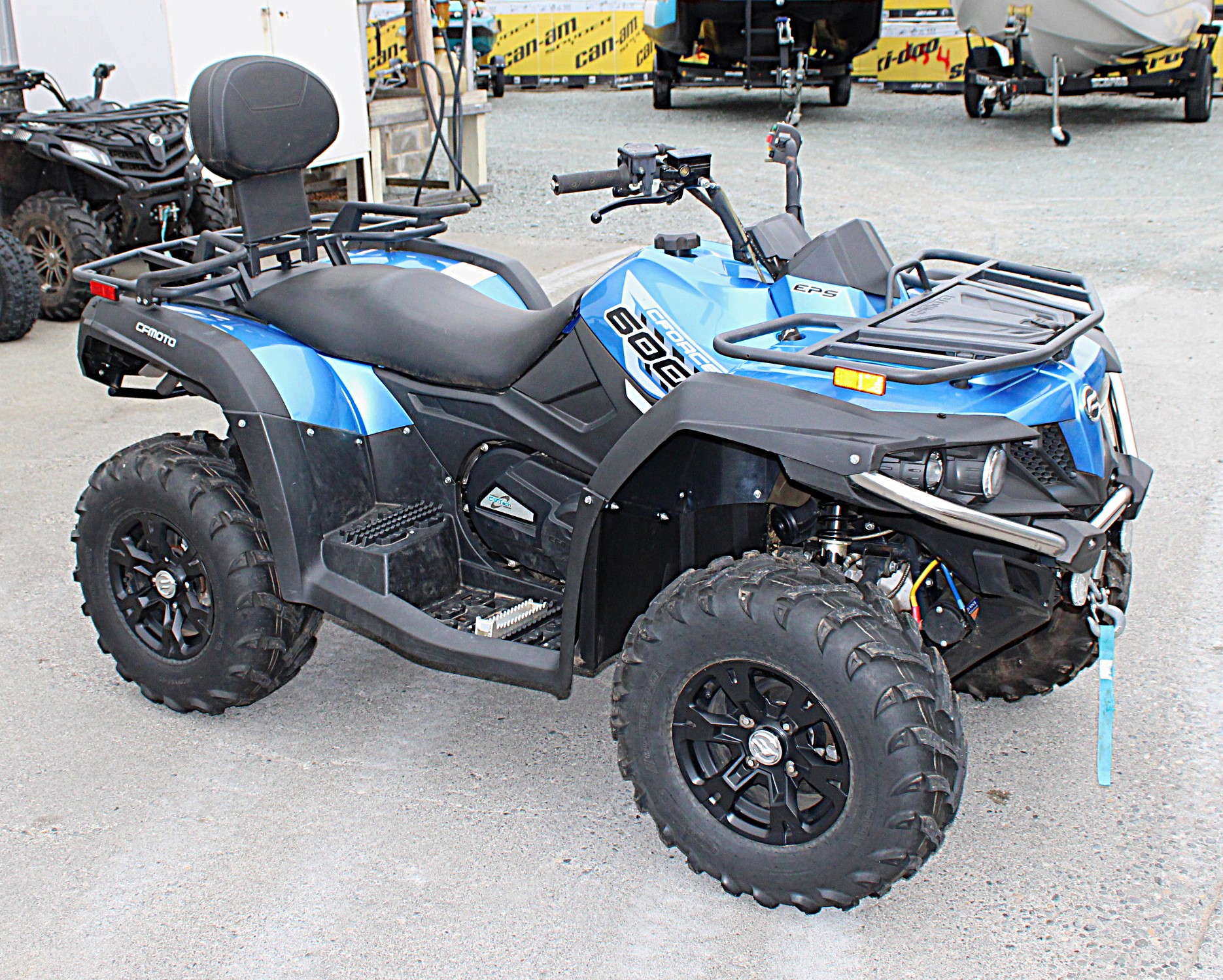 * Sale Price does not include Freight, Set-up, Tax, License and Doc fee.The CFMOTO CFORCE 600 is a utility style ATV with an MSRP of $6,299 and is new for 2019. Power is provided by a 4-Stroke, 580cc, Liquid cooled, SOHC, Single-Cylinder engine with Electric starter. The engine is paired with The CFORCE 600 rides on Aluminum wheels with 25 X 8 X 12 front tires and a 25 X 10 X 12 rear tires. The front suspension is an Independent Double A-Arm while the rear suspension is an Independent Double A-Arm. Front Hydraulic Disc brakes and rear Hydraulic Disc brakes provide stopping power. The CFORCE 600 comes standard with an One-Piece, 2-passenger seat.