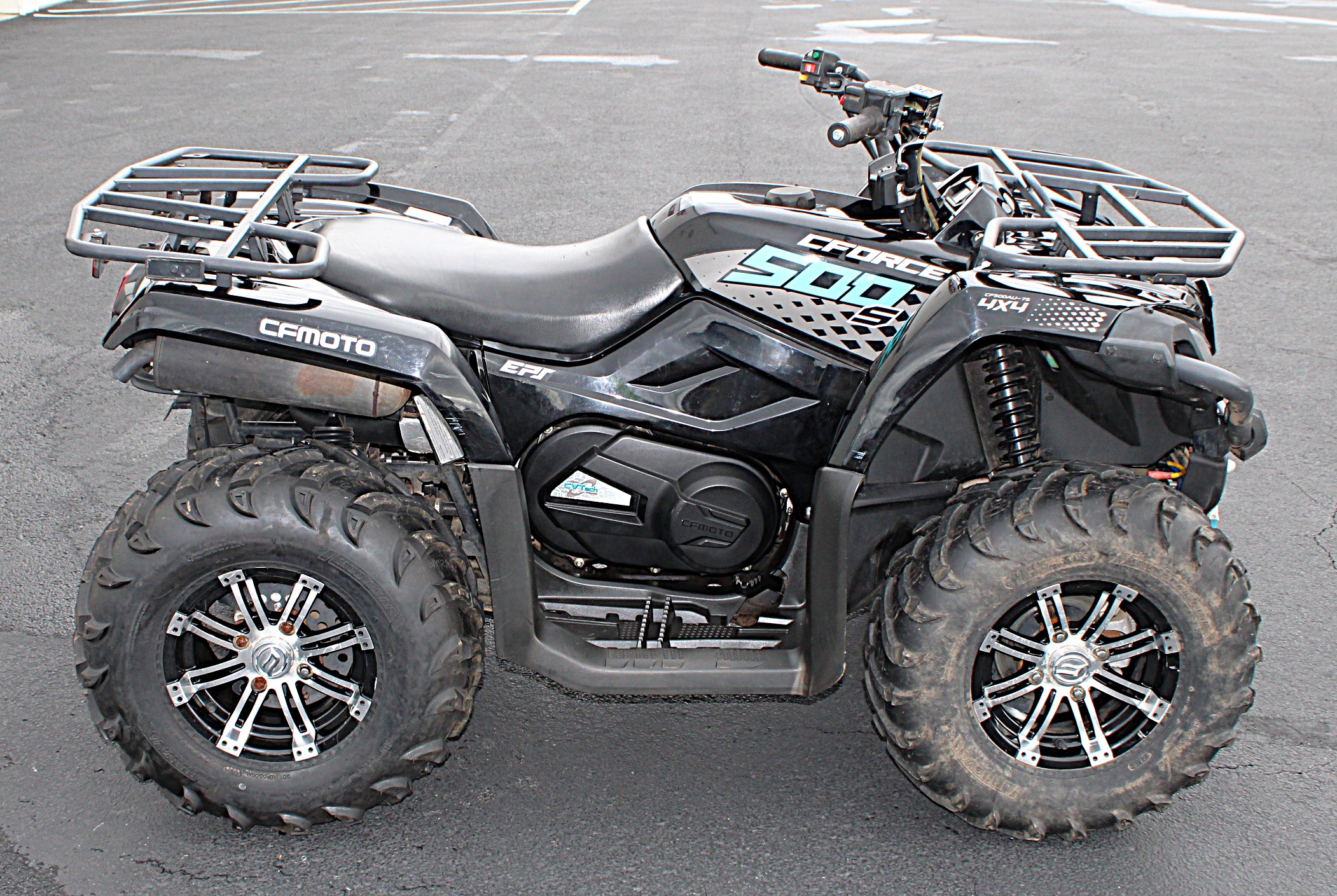 * Sale Price does not include Freight, Set-up, Tax, License and Doc fee.The CFMOTO CFORCE 500S is a utility style ATV with an MSRP of $5,299 and is carryover for 2019. Power is provided by a 4-Stroke, 495cc, Liquid cooled, SOHC, Single-Cylinder engine with Electric starter. The engine is paired with The CFORCE 500S rides on Aluminum wheels with 25 X 8 X 12 front tires and a 25 X 10 X 12 rear tires. The front suspension is an Independent Double A-Arm while the rear suspension is an Independent Double A-Arm. Front Hydraulic Disc brakes and rear Hydraulic Disc brakes provide stopping power. The CFORCE 500S comes standard with an One-Piece, 1-passenger seat.