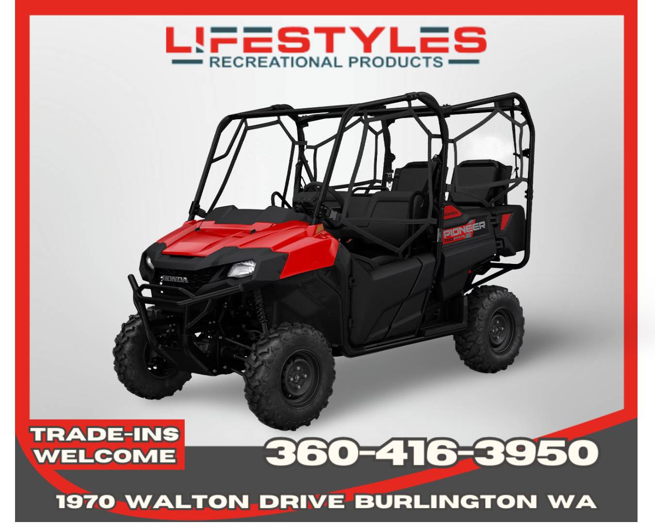 Adventure just got an upgrade. For 2026, the new Pioneer 700-4 blends proven Honda performance with enhanced comfort and convenience. As always, it features our convenient QuickFlip® seating but now adds more storage and rugged new Kenda tires. Choose from standard, Deluxe, or Forest trims, and redefine what versatility and capability can do for you and your crew.