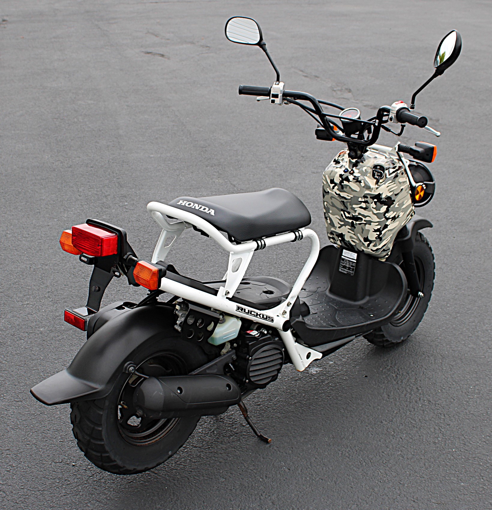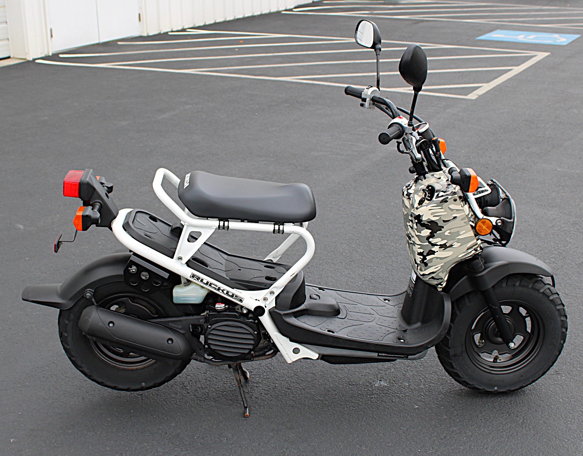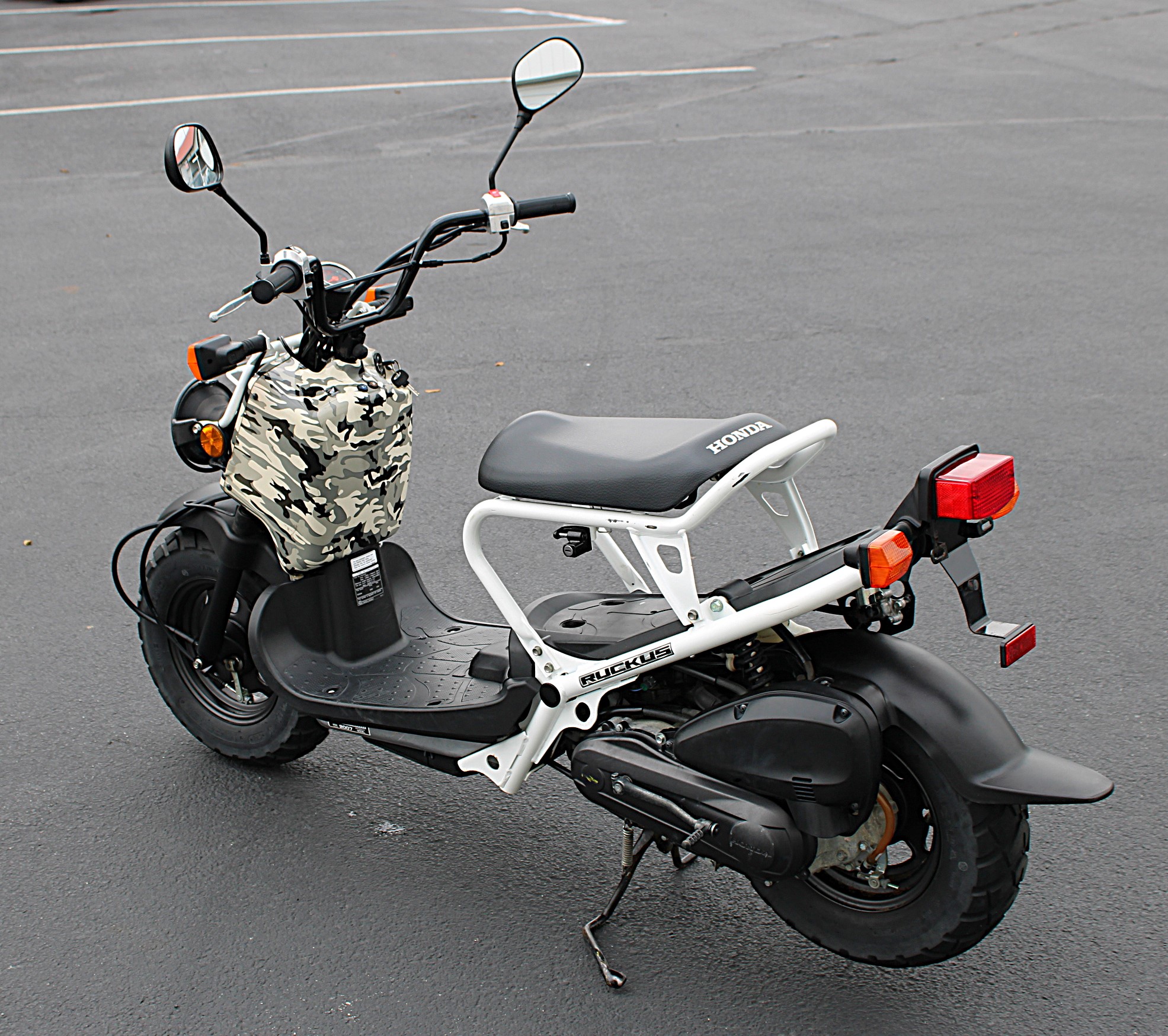 The Honda Ruckus Base is a scooter with an MSRP of $2,049 and was carryover for 2007. Power is provided by a 4-Stroke, 49.4cc, Liquid cooled, SOHC, Single-Cylinder engine with Electric / Kick starter. The engine is paired with The Ruckus Base rides on Steel wheels with a 120/90 R10 front tire and 130/90 R10 rear tire. The front suspension is a Telescopic Fork while the rear suspension is a Single Sided Swing Arm. Front Drum brakes and rear Drum brakes provide stopping power. The Ruckus Base comes standard with an One-Piece, 1-passenger seat.