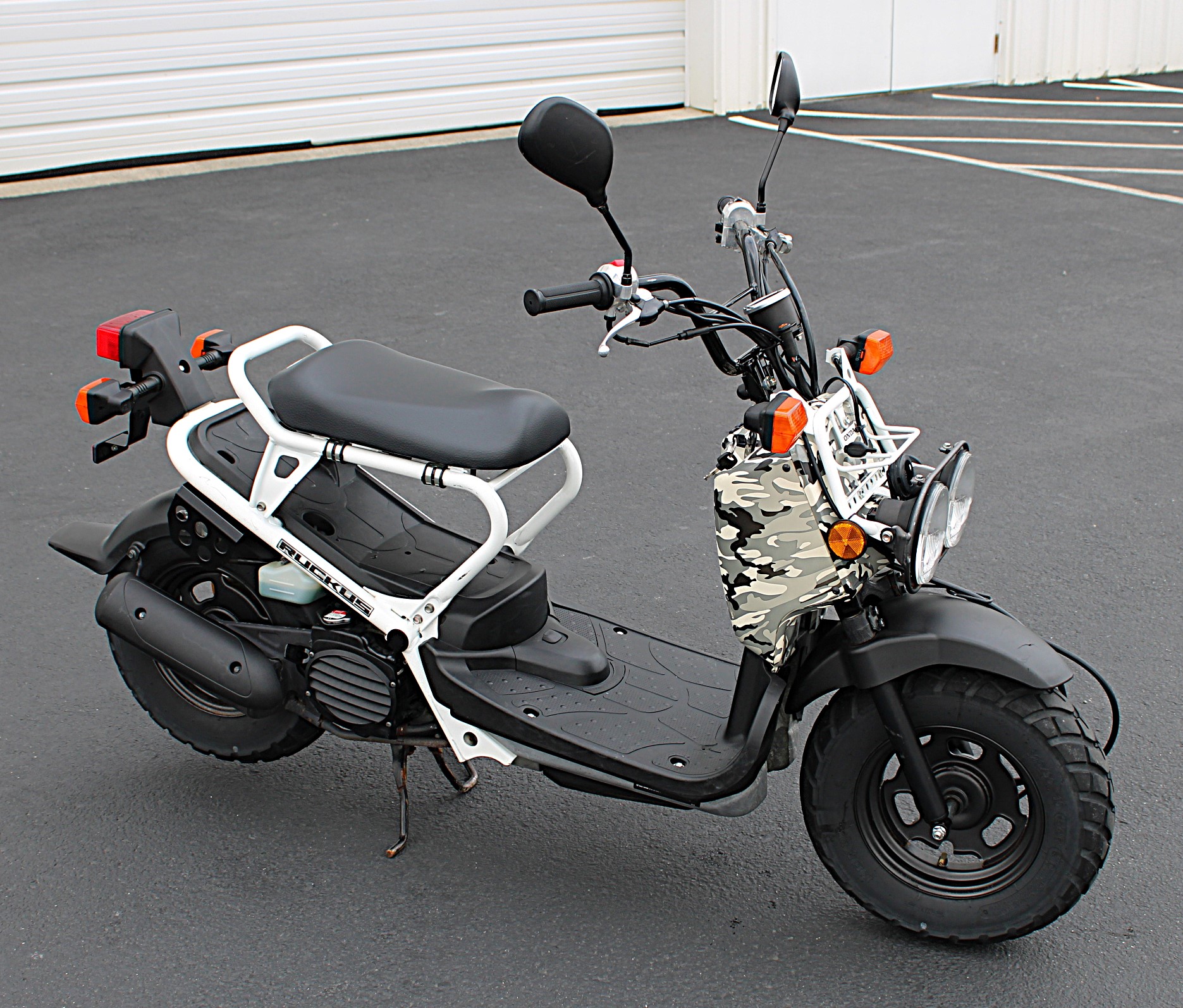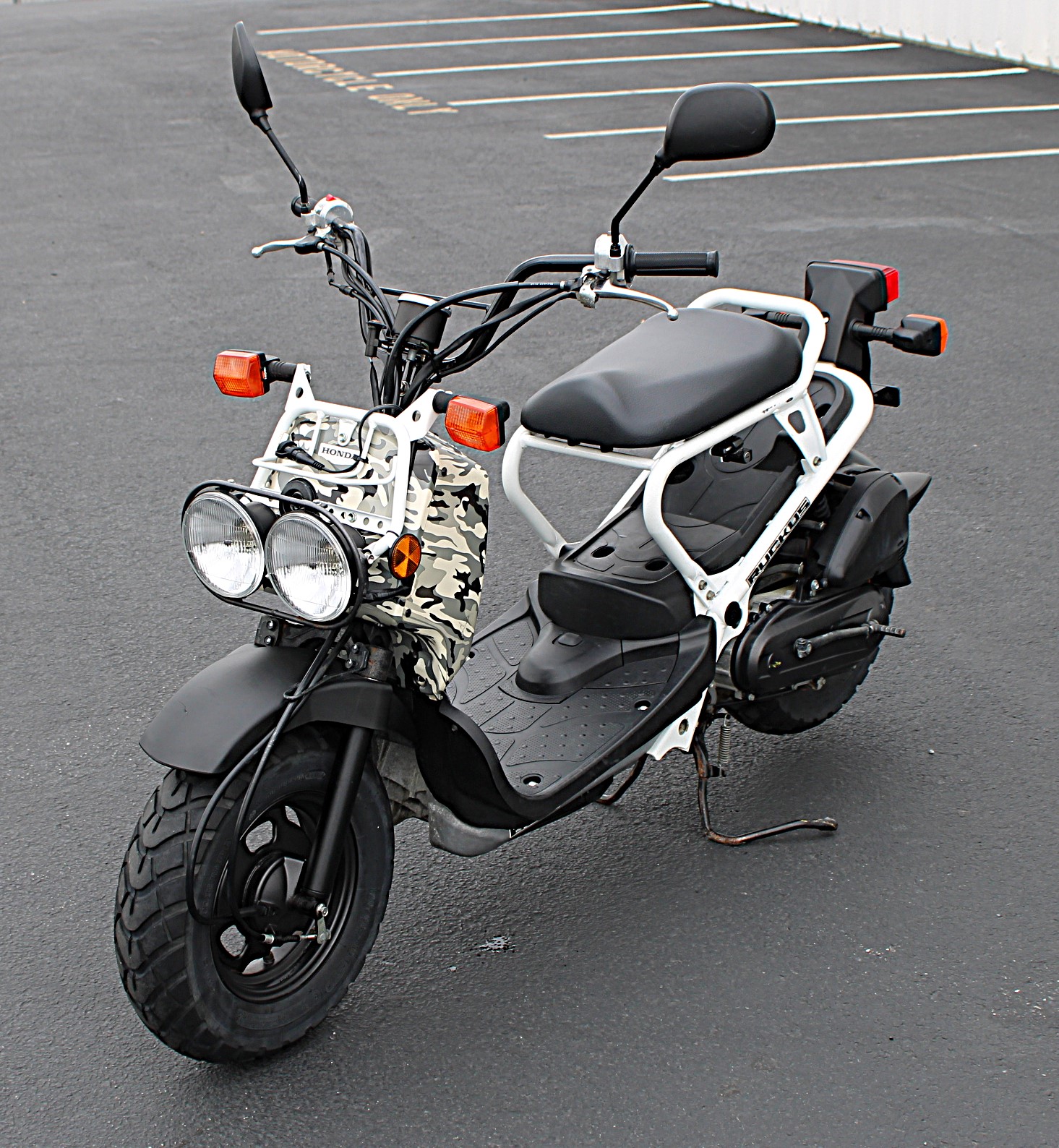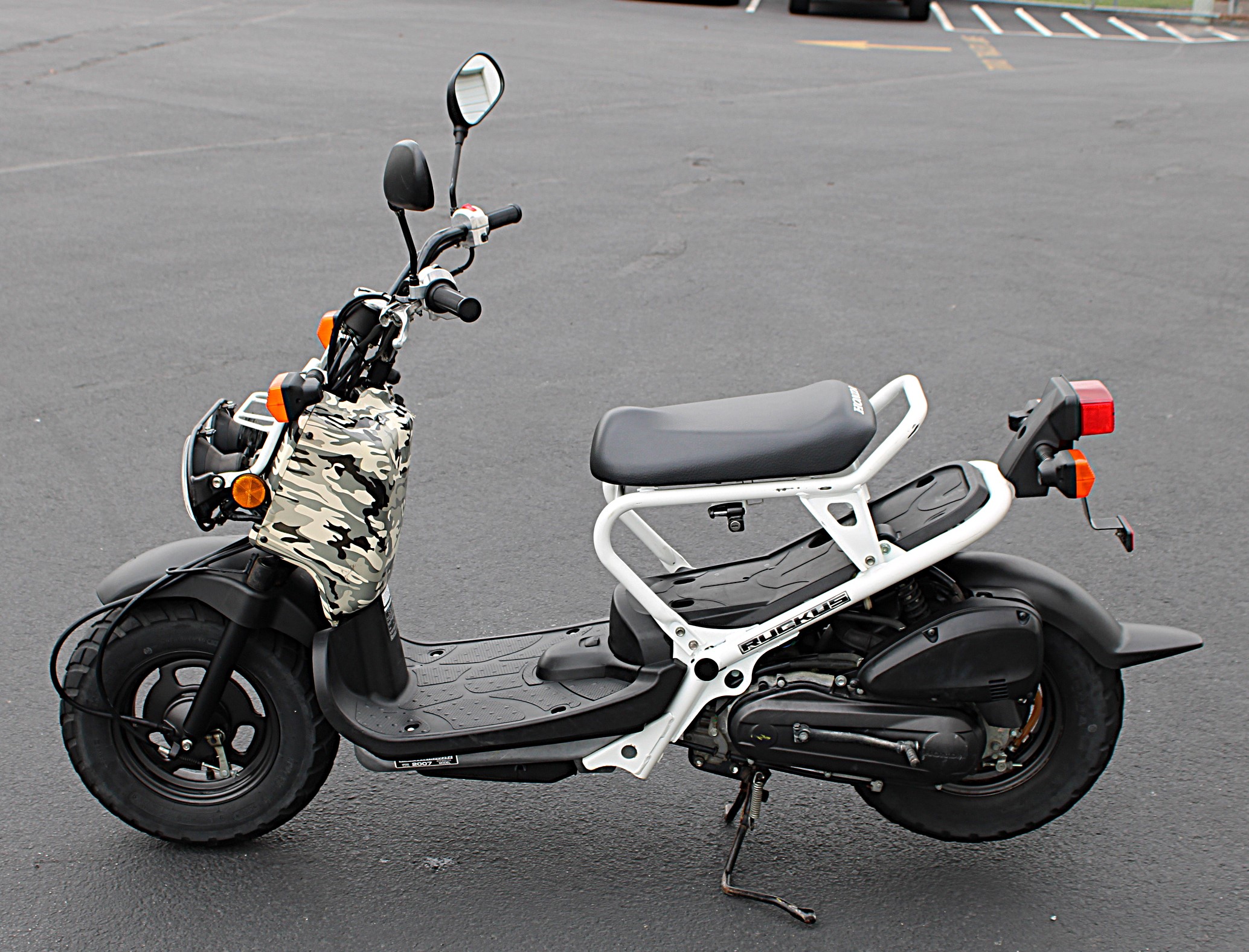 The Honda Ruckus Base is a scooter with an MSRP of $2,049 and was carryover for 2007. Power is provided by a 4-Stroke, 49.4cc, Liquid cooled, SOHC, Single-Cylinder engine with Electric / Kick starter. The engine is paired with The Ruckus Base rides on Steel wheels with a 120/90 R10 front tire and 130/90 R10 rear tire. The front suspension is a Telescopic Fork while the rear suspension is a Single Sided Swing Arm. Front Drum brakes and rear Drum brakes provide stopping power. The Ruckus Base comes standard with an One-Piece, 1-passenger seat.