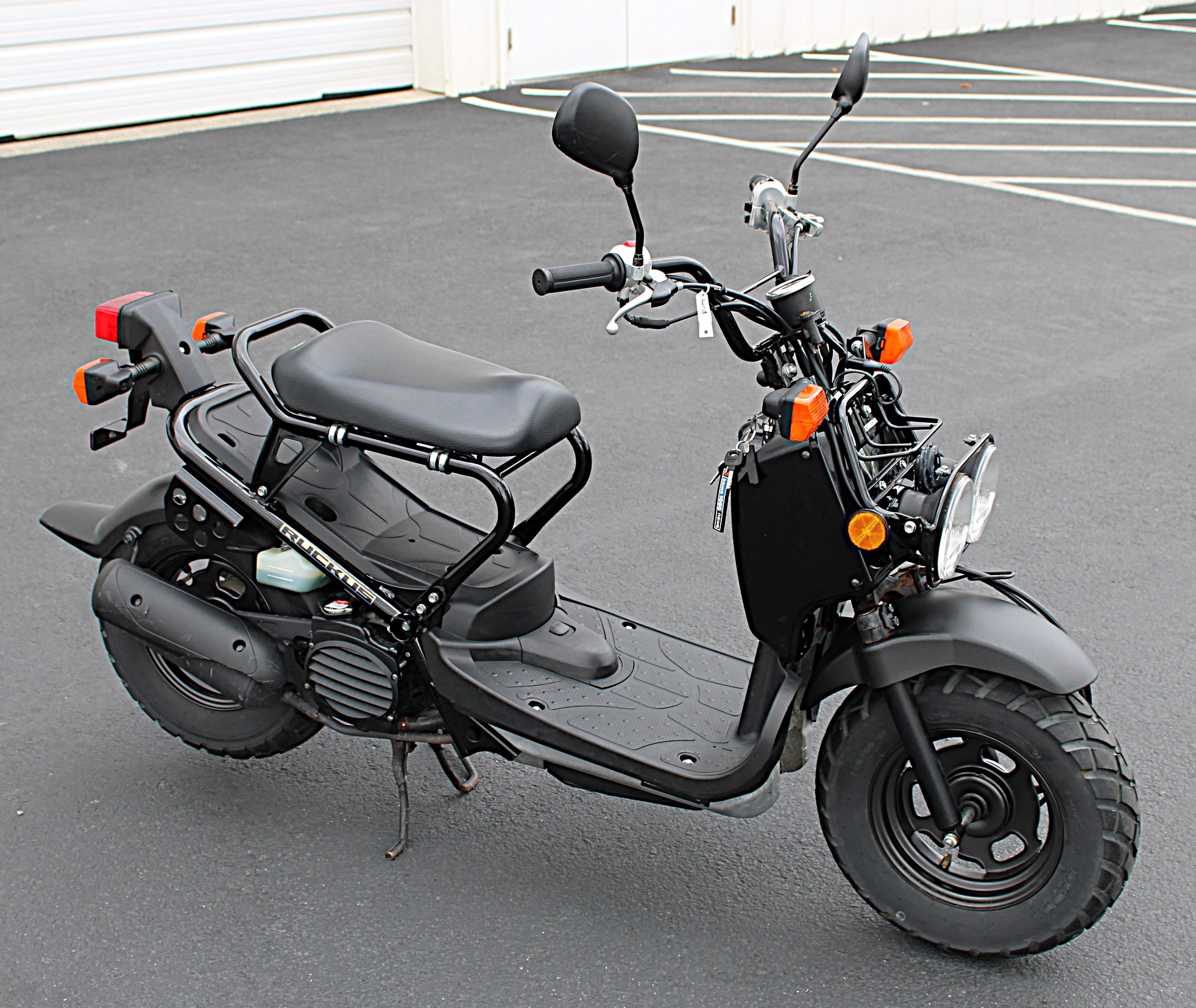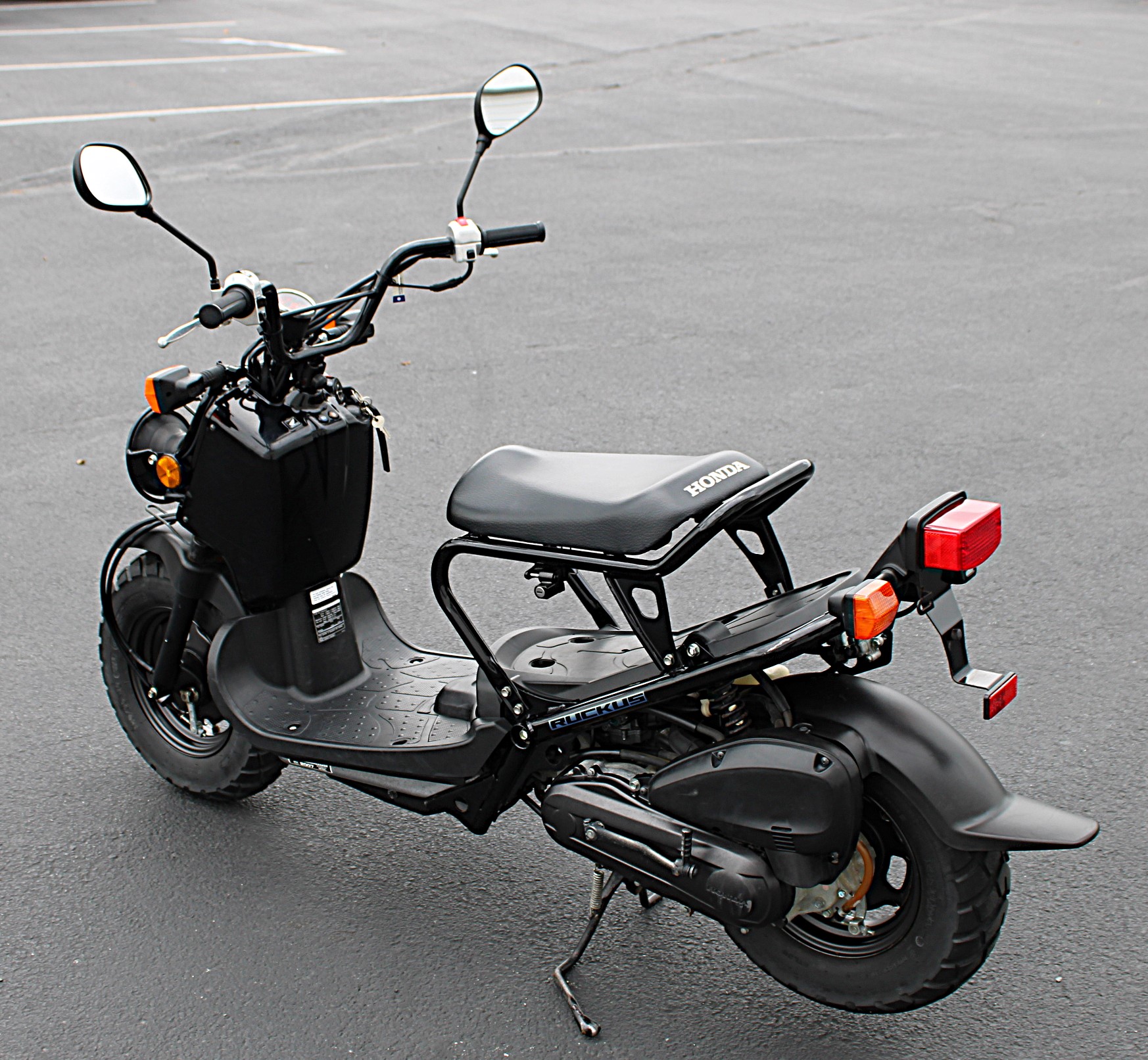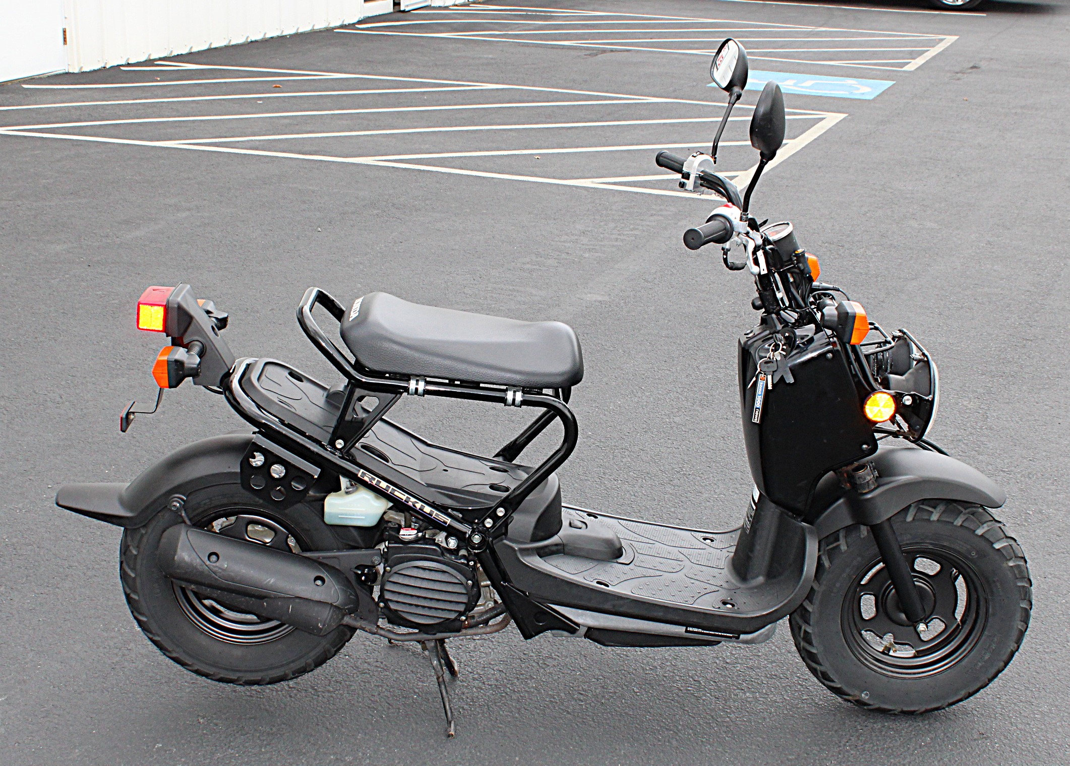 The Honda Ruckus Base is a scooter with an MSRP of $2,049 and was carryover for 2007. Power is provided by a 4-Stroke, 49.4cc, Liquid cooled, SOHC, Single-Cylinder engine with Electric / Kick starter. The engine is paired with The Ruckus Base rides on Steel wheels with a 120/90 R10 front tire and 130/90 R10 rear tire. The front suspension is a Telescopic Fork while the rear suspension is a Single Sided Swing Arm. Front Drum brakes and rear Drum brakes provide stopping power. The Ruckus Base comes standard with an One-Piece, 1-passenger seat.