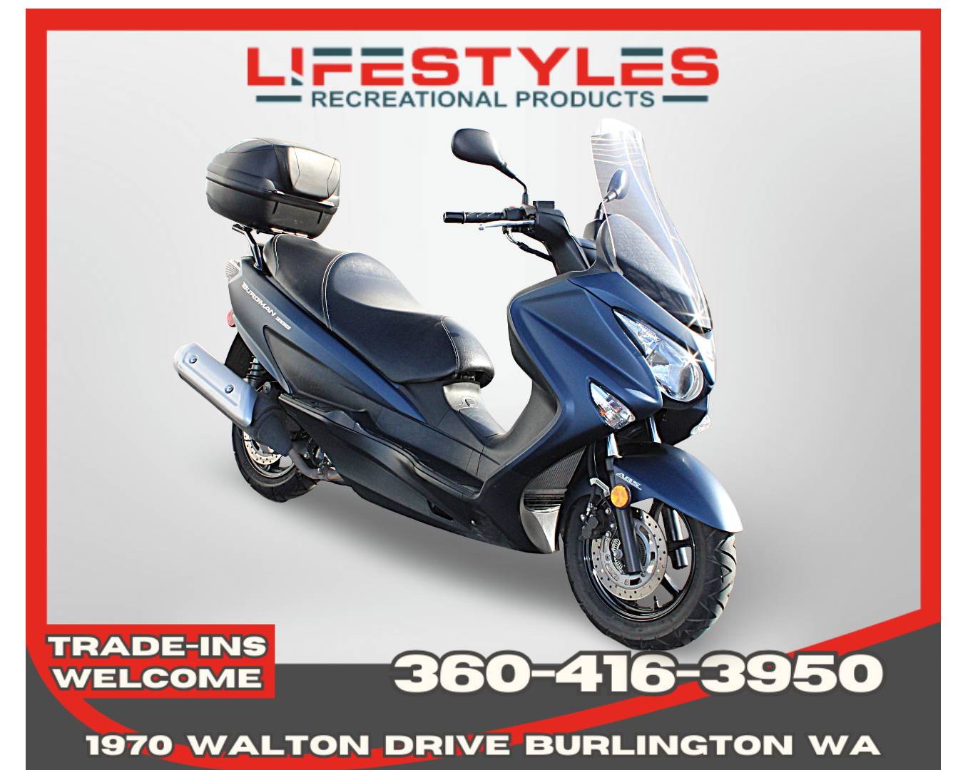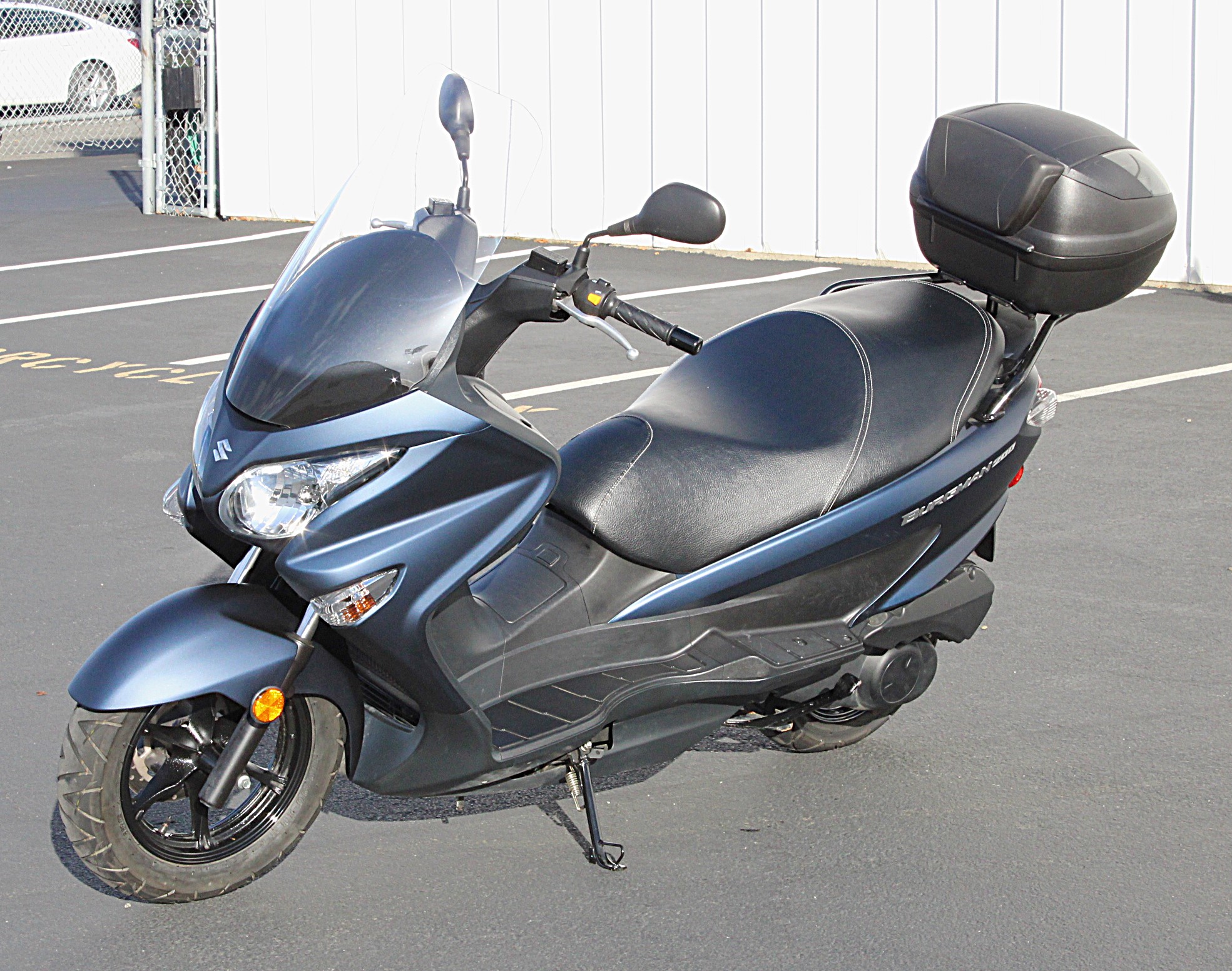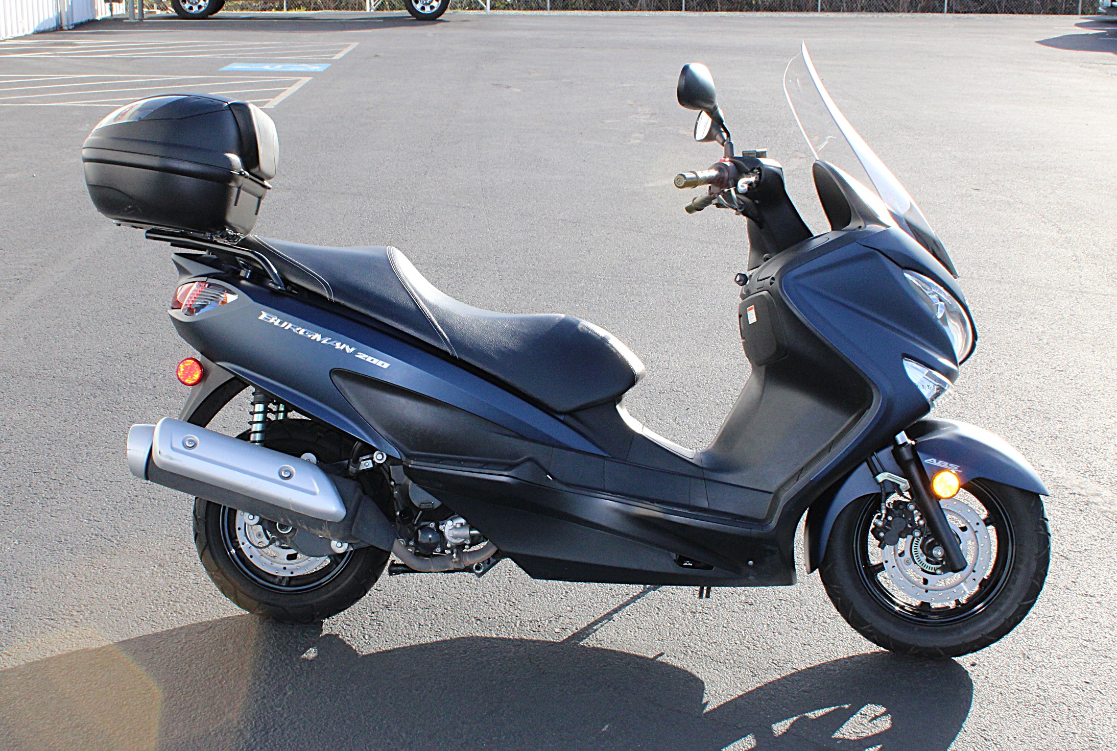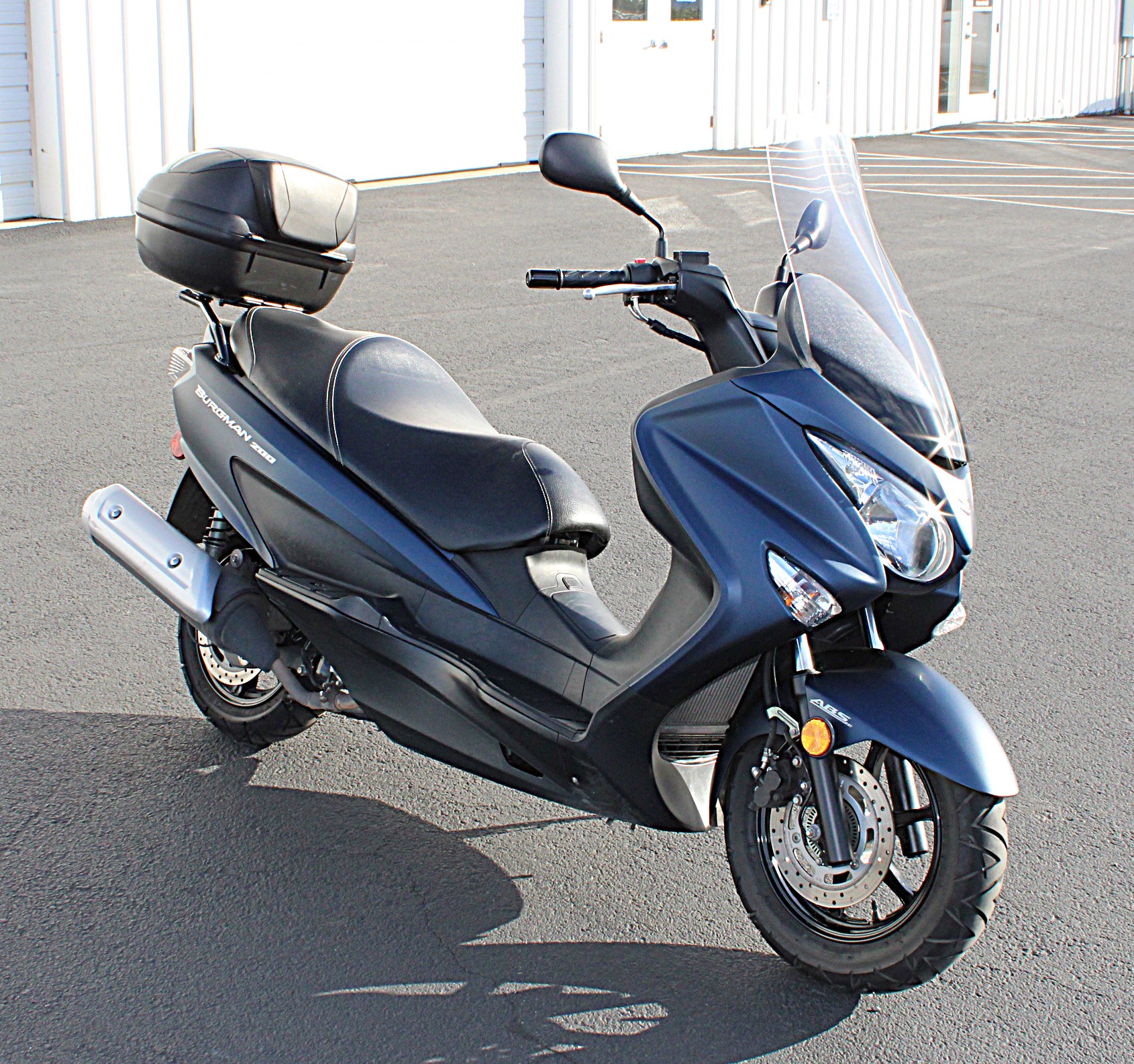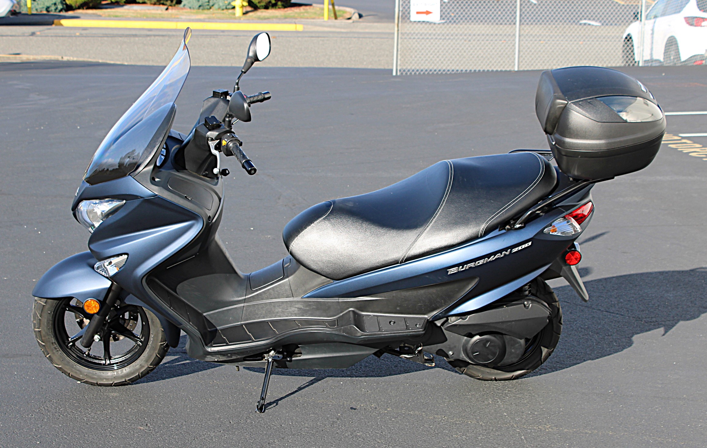 * Sale Price does not include Freight, Set-up, Tax, License and Doc fee.Everything you thought you knew about smart commuting and exciting riding is about to change. Taking advantage of Suzuki's advanced technology, the compact Burgman 200 has everything you need and more. The liquid-cooled, fuel-injected, SOHC engine is tuned for optimal performance at the low- and mid-range revs used most for commuting and exploring around town. The fully automatic transmission seamlessly puts down power by a simple twist of the wrist. Smooth is what you feel. Quiet is what you hear. And power and fuel efficiency are your rewards. Plush double-stitched seating and specially designed cutaway floorboards provide comfort second to none. The Burgman also features a huge storage compartment large enough for two full-face helmets. From its sleek Metallic Matte Stellar Blue bodywork and aerodynamic windscreen to its smooth and reliable, 200cc engine, the 2022 Burgman 200 is the smart choice for scooters.