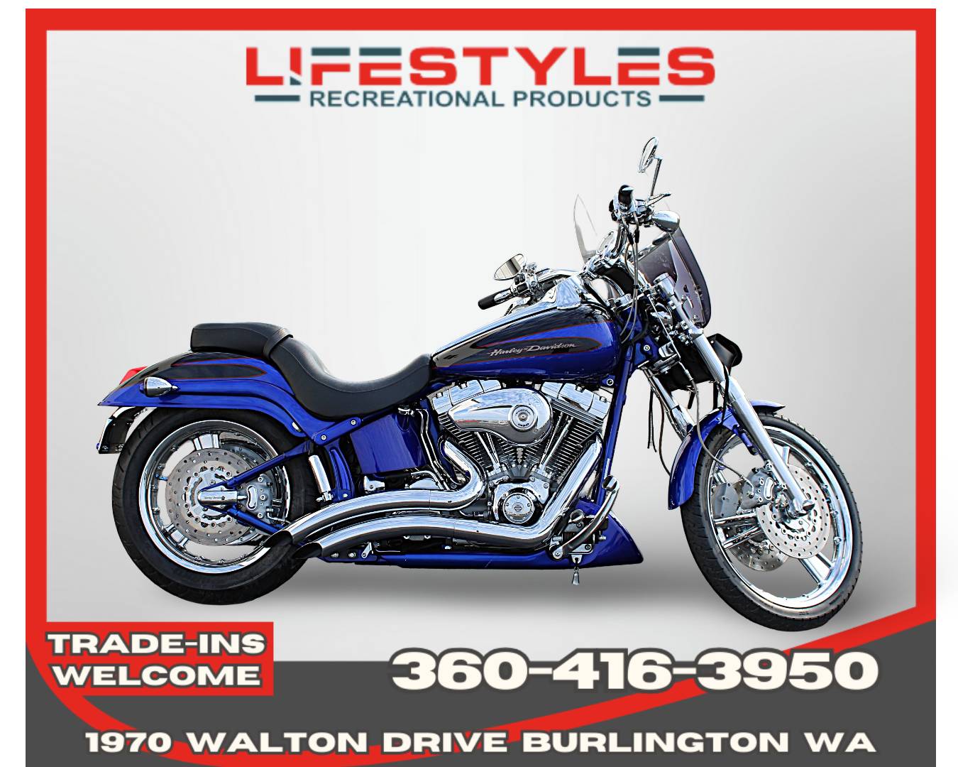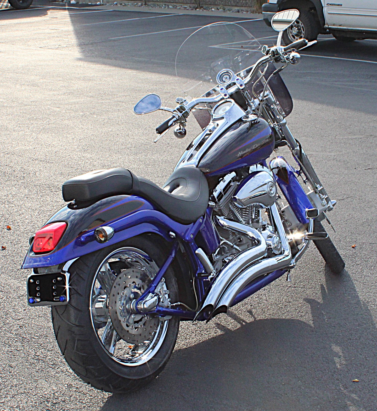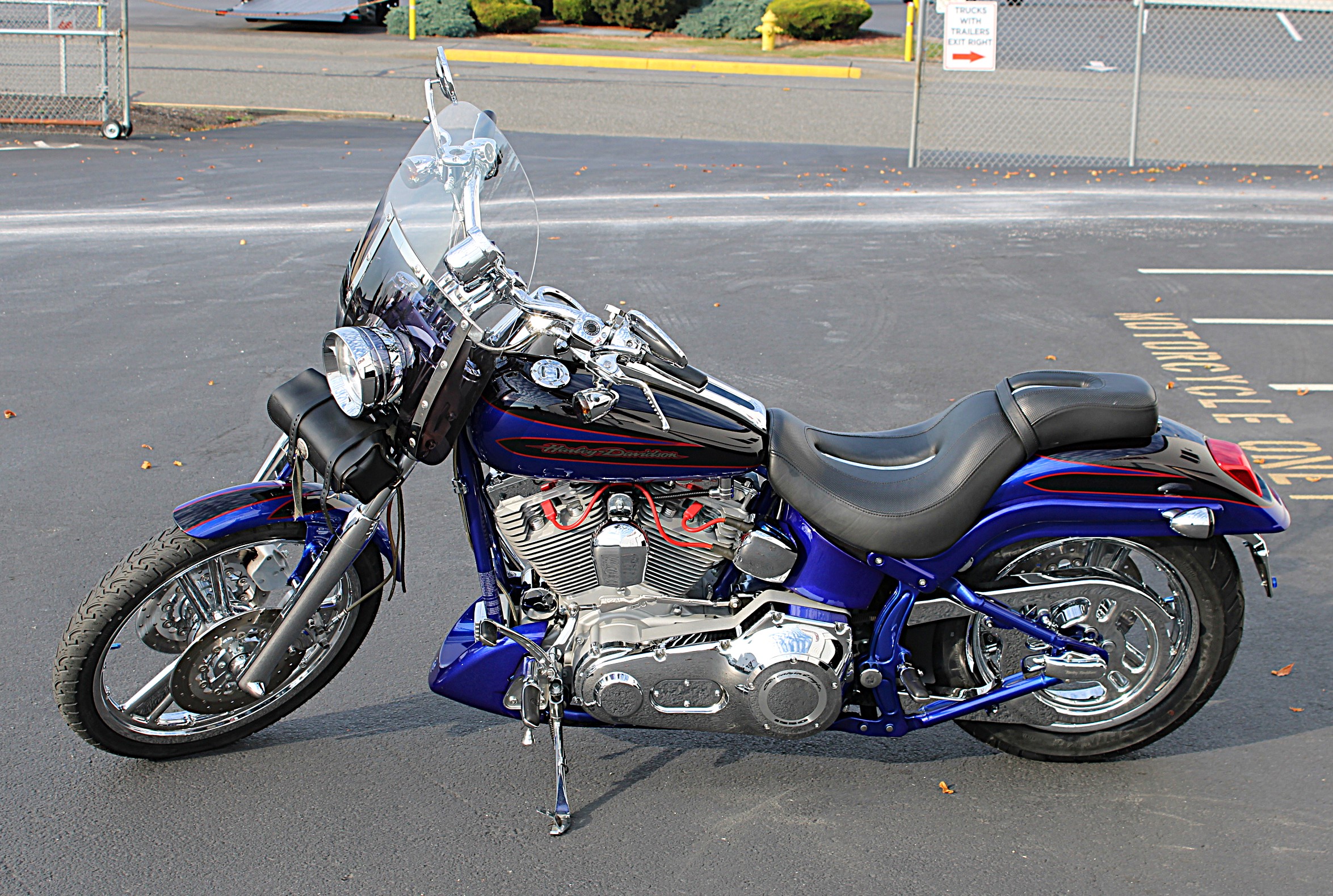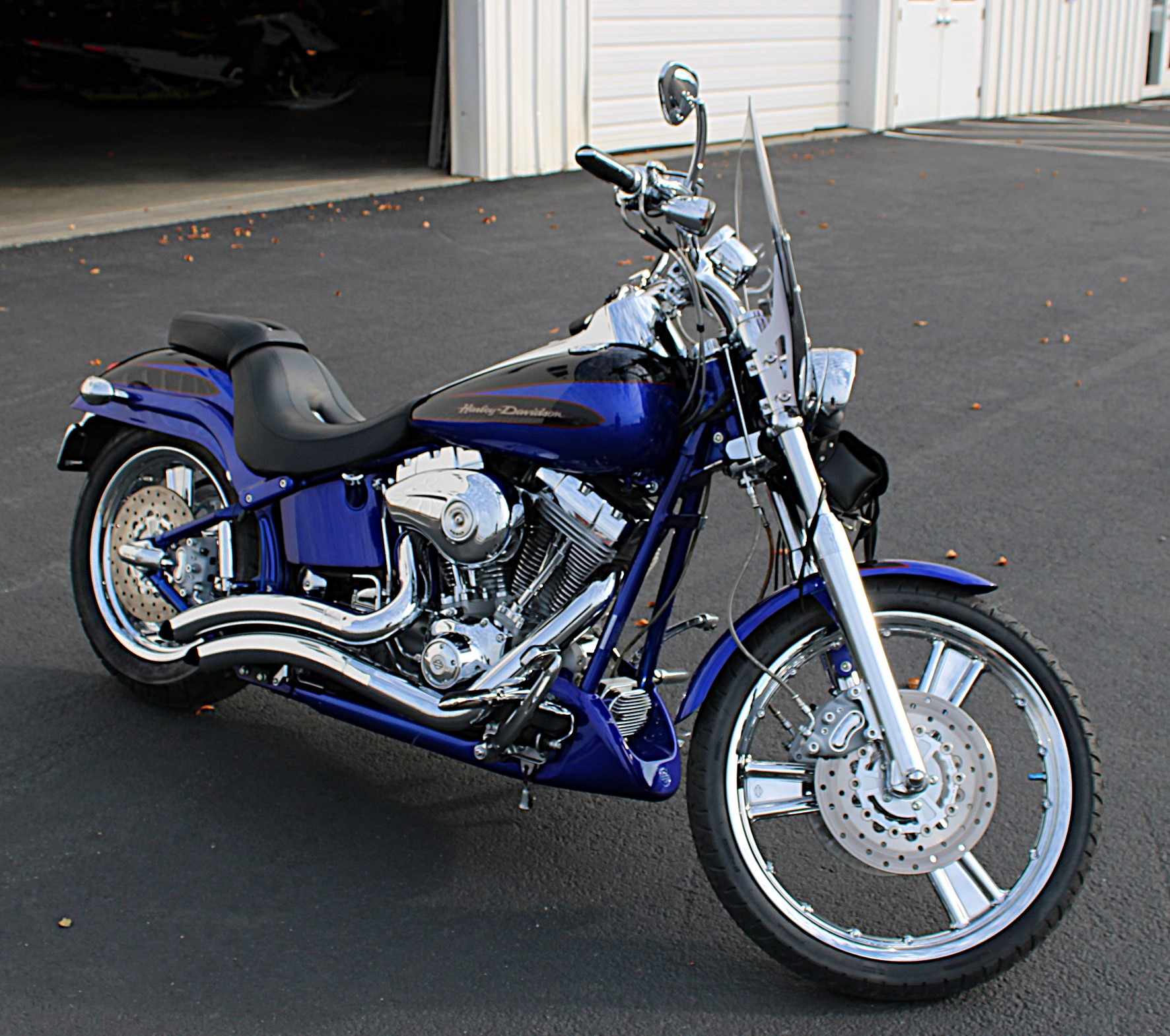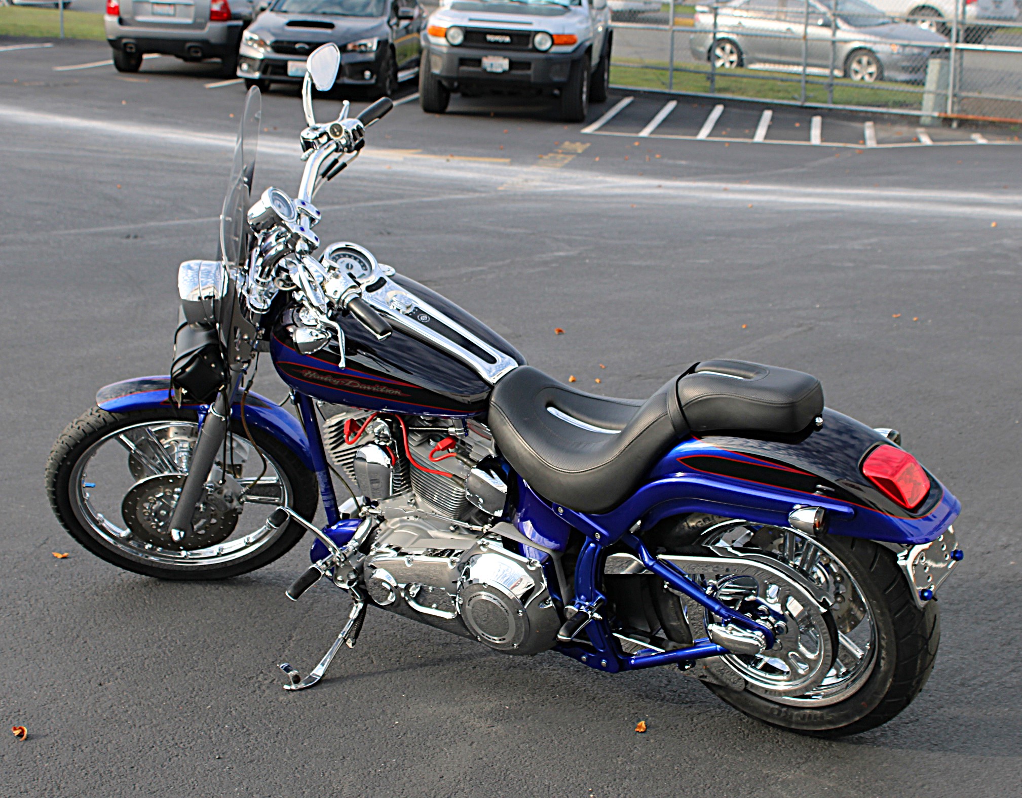 The Harley-Davidson Softail Deuce is a cruiser style motorcycle with an MSRP of $16,795 and was carryover for 2004. Power is provided by a 4-Stroke, 1442cc, Air cooled, OHV, V Twin engine with Electric starter. The engine is paired with The Softail Deuce rides on Aluminum wheels with a Dunlop MH90-21 54H front tire and Dunlop 160/70 VR17 rear tire. The front suspension is a Telescopic Fork while the rear suspension is a Twin Sided Swing Arm. Front Disc brakes and rear Disc brakes provide stopping power. The Softail Deuce comes standard with an One-Piece, 2-passenger seat.